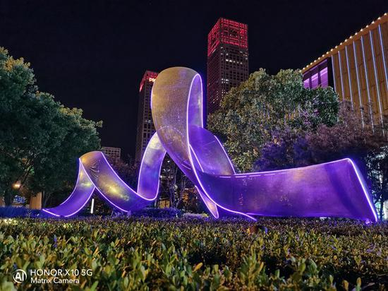 在这组样张中,荣耀X10的RYYB主摄的优势就有十分明显的体现,整体观感出色,画面干净,同时对于画面的亮度和色彩的控制十分得当,灯光效果因此得到很好地呈现,没有因为对比度高而出现明显的过曝。小米10青春版虽说也表现不错,但是画面出现了明显的噪点,同时灯光有了一定的过曝现象。