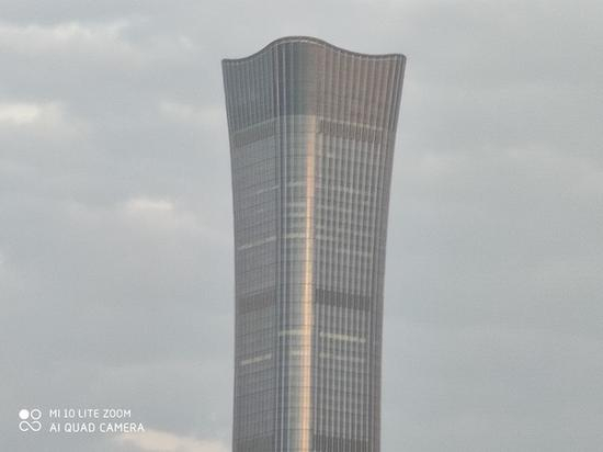 值得注意的是,我们将建筑物的表面部分进行放大,可以看出荣耀X10有着更为清晰的显示效果,而小米10青春版这部分噪点较多,画面出现涂抹、显示不清等问题。