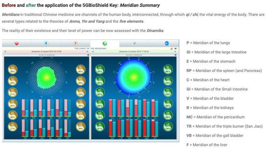 第一张图说的是人体四周的‘气场辐射’,BioShield 声称这是使用设备前后,人体细胞内放射的‘生物光子能量’变化。