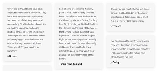 在 BioShield 的官网上,你还能看到很多‘用户反馈’,发言者不乏有教师、企业白领或旅行者等职业。