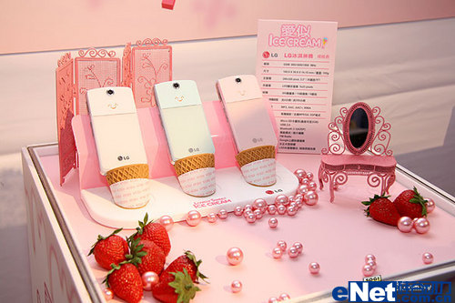 近日LG发布型号为KF350一款三色的冰激凌机,这三款梦幻般柔和的彩色手机:白色巴黎香草、粉红色仲夏草莓与蓝色沁凉薄荷,将唤醒夏日的美好记忆。