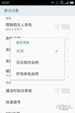 Flyme所提供的语音留言则是完全把这些操作本地化,在通话设置里面选择“无应答时启用”或者“所有来电启用”,即开启这一功能。“无应答时 启用”在25秒无人接听电话的时候会自动接通,并开始录音,“所有来电启用”则不需等待,来电即接通开始录音。录音时间大约45秒左右。