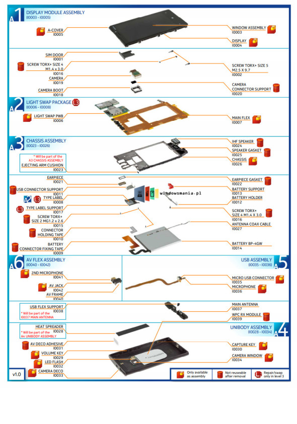 诺基亚Lumia 920是今年九月发布的一款Windows Phone 8旗舰智能手机,凭借其出色的硬件配置以及简洁时尚的外形吸引了众多网友关注。近日国外网站WindowsPhoneMania.pl曝光了这款手机的维 修手册,并展示出了Lumia 920简单的拆解步骤。