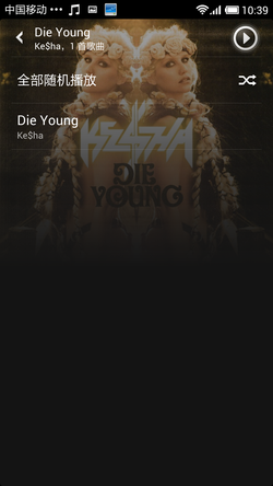二级菜单白橙色的搭配展现出一种年轻的活力,比如MIUI的音乐界面设计简洁大气,一个主界面搞定所有功能,播放界面中巨大的唱片封面和灰色渐变效果非常精致,小编不免有些怀念索尼爱立信X10上的Media Scape UI……