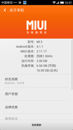 在工程师和Geek文化主导下,Android系统繁琐的操作确实有些反人类,小米2所用的MIUI基于Android4.1.1深度定 制,MIUI融合了iOS和Android系统的优点,并在其中加入了自己的特色,和原生Android系统相比层级关系更简单,扁平化的操控体验和 iPhone非常接近。