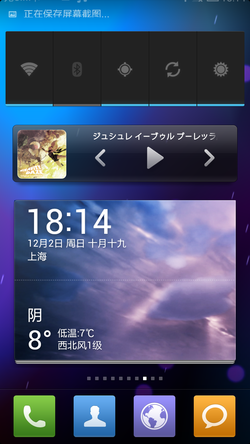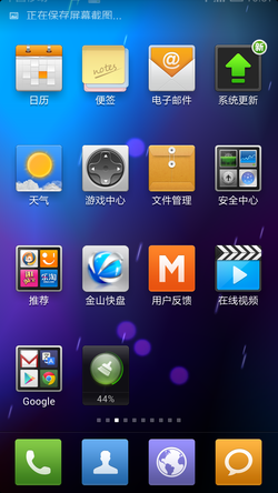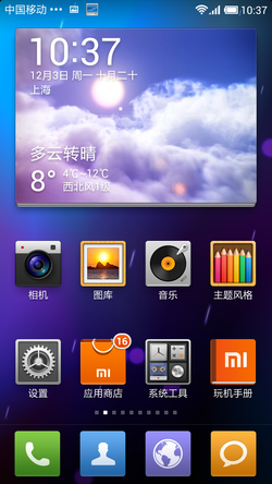 和iPhone一样,MIUI只有一个主屏幕,随着程序的增加可以无限纵向扩展,也支持App文件夹拖拽操作,但MIUI也保留了Android特色的Widget小插件功能,App和小插件混排在一起视觉上虽然不够统一,但操作却更加便捷。