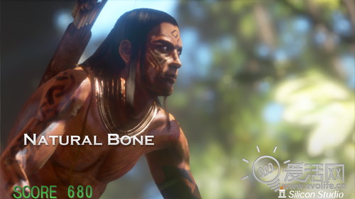 NATURAL BONE:与“如今高端家用机”使用同等3D建模与高清纹理数据时GPU性能。每名角色多边形数量达1万2000个,背景有15万个。