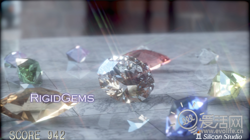 RIGID GEMS:测试宝石对光的折射与反射所产生复杂着色时GPU性能,以及复数宝石和戒指的碰撞场景时CPU性能。该项目所使用的3D建模多边形数量达到每颗宝石300~600个,每只戒指达到832个。
