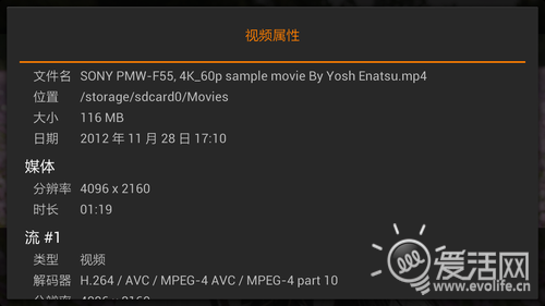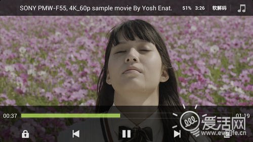1080P视频播放远非小米2的极限,我们找来一段Sony 4K演示片,视频分辨率达4096×2106,原生播放器只能解码音频,但换作MX Player软解,依然可以流畅播放全片,APQ8064的隐藏实力有待更多软件去发掘。