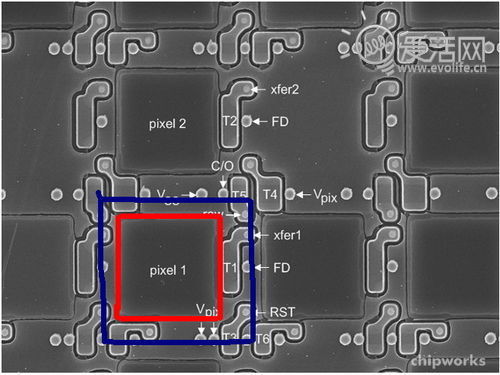 红框里面才是每个“像素”真正的大小,红框与蓝框之间是辅助电路