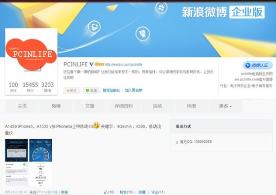 PCINLIFE是国内比较知名的数码论坛,该网站的官微发博文表示iPhone5以及V版(国外运营商Verizon)的iPhone5s可以支持4G网络了,iPhone5s支持4G网络还不算是稀奇,但是iPhone5可以算得上一件大事儿。