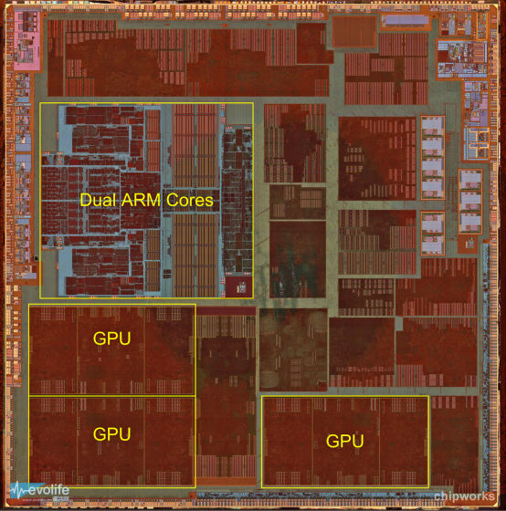 最开始,手机的GPU还是一个很简单、很无关紧要的组件。像苹果的第一代iPhone,诺基亚一些采用Symbian系统的智能手机,它们的 GPU,无论功能还是性能都相当“可怜”。但随着技术的发展,GPU在SoC中的地位迅速膨胀,其体积甚至超过了CPU,霸占了一大块地盘。