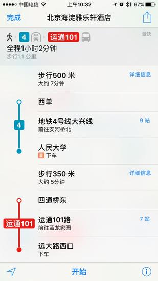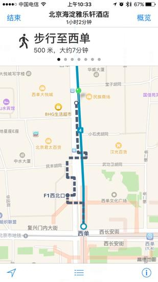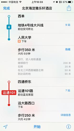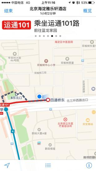 到此为止我们基本就算是完整体验了一次苹果自带地图的公交功能。在整个路途中虽然对北京的公交线路比较熟悉,但我们还是把自己定位一个刚到北京的旅行者的心态。不得不说,这一趟下来体验还是很顺畅的,并没有因为某些细节信息的缺失导致行程障碍。