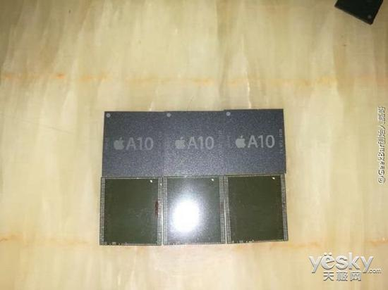与此同时,微博网友为我们带来了苹果A10处理器的真身,总共为六颗,虽然被称为是处理器,不过从其针脚数量来看这应该是与SoC封装在一起的内存芯片,而这颗传闻当中采用台积电10nm工艺制造的处理器在性能方面都会有明显提升。