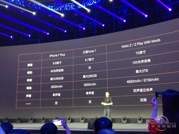苹果iPhone 7发布会将于9月7日上午10点举行(北京时间8日凌晨1点),而在9月6日下午联想举行了Moto Z/Z Play国行发布。有趣的是联想在发布会上拿出了苹果还没发布的iPhone 7 Plus进行了调侃,到底是什么情况。其实手机厂商拿苹果手机出来对比调侃已经不是什么新鲜事,毕竟对参数党来说,苹果的很多参数跟安卓手机相比,还是有很大差别的。