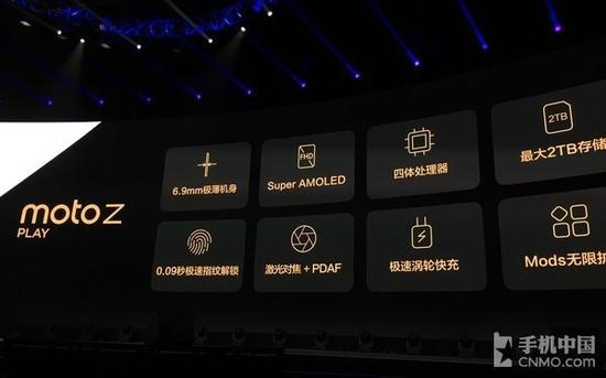 此外,今天的发布会上还发布了Moto Z Play,同样支持Moto Mods模块扩展,搭载骁龙625处理器,前置500万像素+后置1600万像素摄像头,支持激光对焦,内置3GB RAM+32GB ROM存储组合,配备3510mAh电池。
