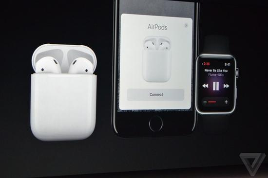 第七,抛弃3.5mm接口,引入AirPods无线耳机。iPhone 7系列果然抛弃了3.5mm接口,使用Lightning数字音频接口,附送转换器和Earpods耳机。苹果还推出了AirPods无线耳机,虽然目前 许多用户还无法接受,不过苹果表示,相信未来一切都是无线的。AirPods耳机没有旋钮也没有按键,它采用了苹果W1芯片,电池能支持5小时。 AirPods可以连接iPhone和Apple Watch使用,单独购买,售价为1288元,10月底开卖。