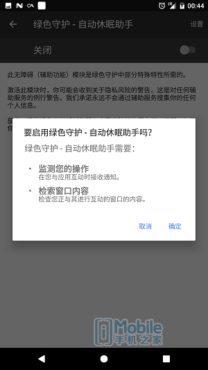 而绿色守护的上手难度就基本可以用“没有”来形容了。安装上绿色守护之后打开它,它会提示你去完成一些辅助功能及权限的授权操作,甚至为你提供了这些操作的直接入口,只需要三两步就能完成设置。