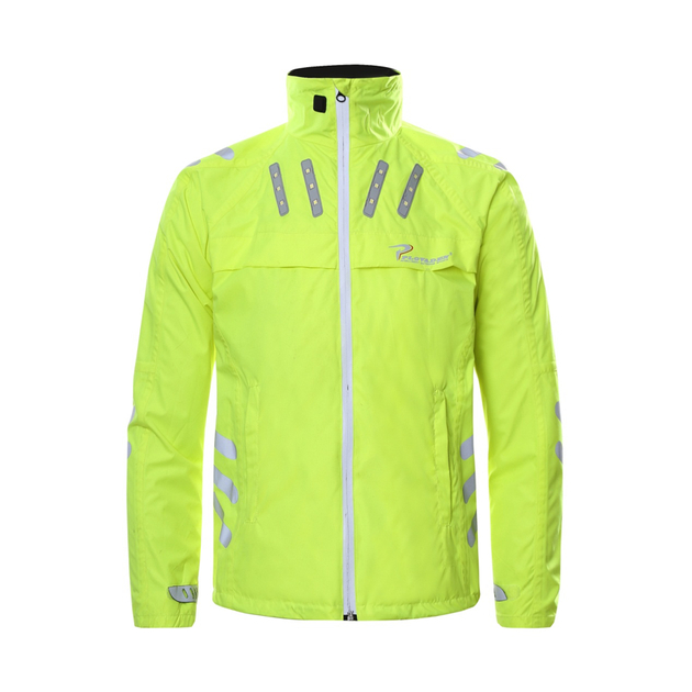 除了不惧风雨的基本素质,整件冲锋衣具有28个反光条,23个智能LED点阵,有效照明200M,亮度媲美氖光灯。