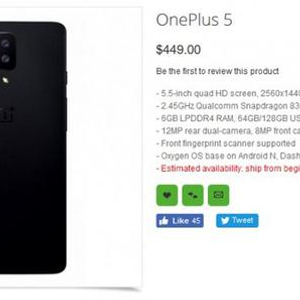去年发布的一加3和一加3T不管在国内还是国外都有着良好的口碑,而有关下一代新机一加5的消息其实早就在外媒被炒翻天。最近外媒曝光了一加手机5的详细参数和售价,首先透露下价格:449美元(约合人民币3098元)。
