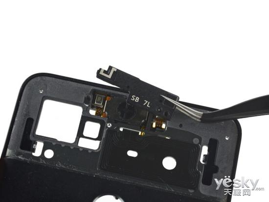 机身顶端剩下的组件都需要加热来分离:手机听筒和NFC天线。