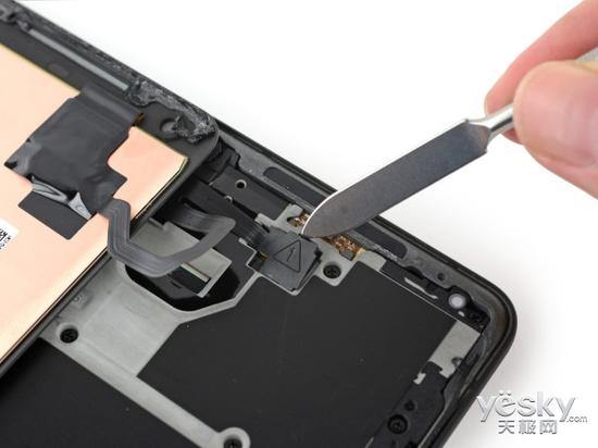 与其他产品一样,显示模块与主板之间通过一组线缆连接。只不过,ifixit认为Pixel 2 XL的线缆要…长一些!不管怎样,拆解这一步都需要细心加小心,一个用力过猛后果可能就是“机毁人亡”。