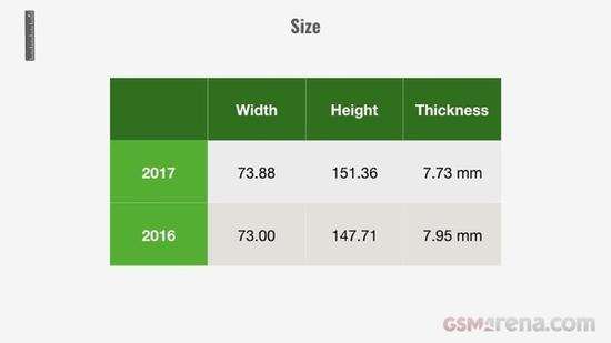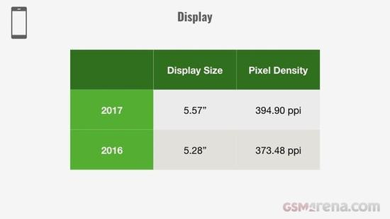 屏幕方面,大小由5.28寸增加到5.57寸,并且随着2560×1440、2160×1080等高分辨率的普及,屏幕的像素密度提高了5.7%。