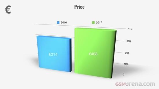 至于去年智能手机的平均售价,其从314欧元提高到了408欧元(约合人民币3190元),增幅高达30%。