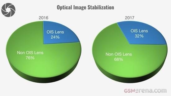 另外,OIS光学防抖的机型也有所增长,不过增幅并不是特别大,目前只有大部分旗舰机型才支持这项技术。