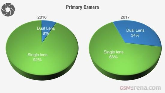 值得一提的是,双摄手机在去年迎来了高速的增长,甚至已经开始在千元机普及,占比已经高达34%。