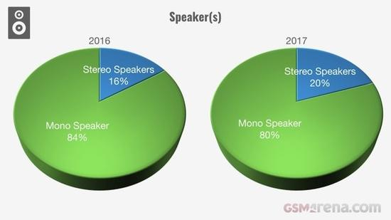 至于扬声器,立体双扬声器的机型稍有增长,去年占比已经达到20%。