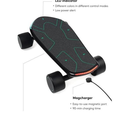 对此,电动滑板制造商WALLNUT在去年就推出了一个全新的”智能电动滑板“系列SPECTRA。他们希望通过手机app和触控操作的结合,来解决出行的“最后一里”问题。