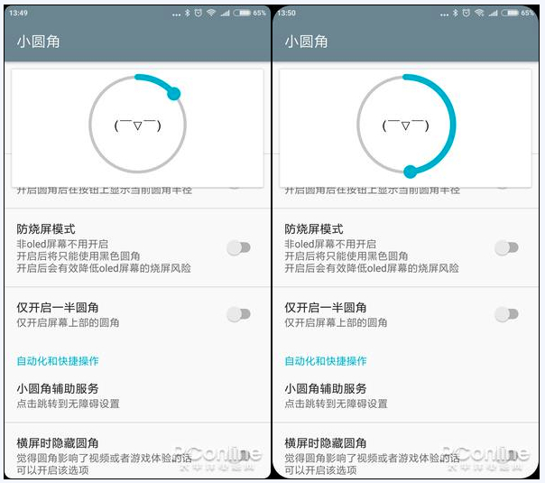 而长按边缘隐藏圆角这个功能,则可以在看视频这类场合下大发神威,让屏幕四角不至于因为圆角而不能完整显示视频内容,这款小圆角APP的确有不少亮点设计。