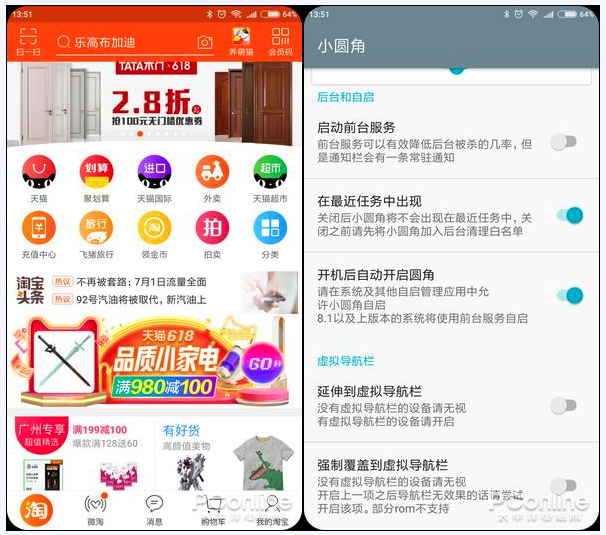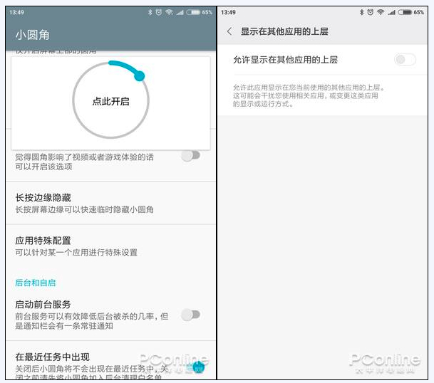 这款APP的名字叫“小圆角”,非常简单直接。它的原理是通过安卓的悬浮窗机制,来遮挡屏幕四角处,让直角变成圆角。