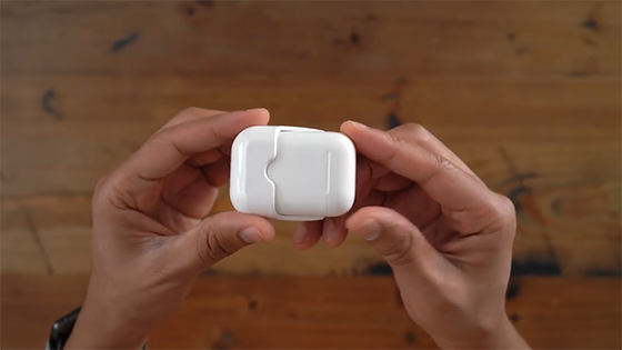 需要注意的是,上图展示的插入方式才是正确的,视频中插反了。外媒在视频中抱怨套上这个壳子以后,AirPods不能完全打开就是因为插反了。当然,由于Lightning插口的特性,正反怎么插都行,但是图中展示方式才是最正确的。