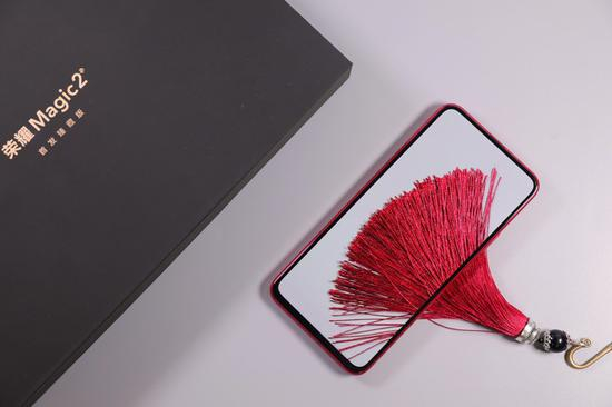 10月22日,微博各路明星再度爆出荣耀Magic2相关配置消息,由赵丽颖“首发官宣”,外形设计方面,荣耀Magic 2拥有炫光渐变红色机身,高屏占比的正面完全由屏幕占据,采用全球首款100%真正全面屏+滑屏设计,整机充斥着浓浓的科幻色彩。同时,荣耀Magic2也是卡位全球首款滑屏手机。