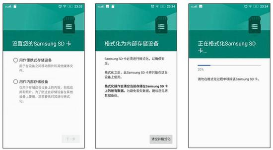 不过,在安卓6.0以后,这功能的玩法走到了头。在安卓6.0中,存储空间仍可以通过SD卡扩容,但要么只能作为便携式存储,只能在其中存放音乐、照片等数据;要么只能作为内部存储,格式化后和内部存储空间同被划分为一个分区,彼此交融,不能再单独取出读取数据。