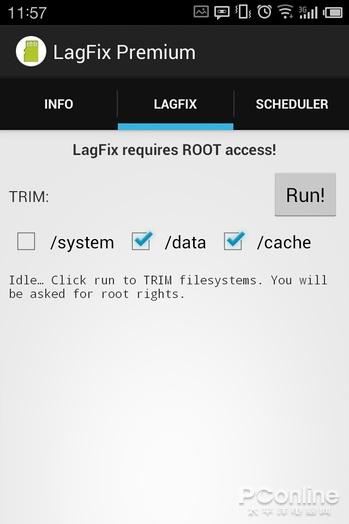 在最早,安卓是不支持Trim的,因此安卓机用久了以后,闪存I/O效率会大为下降,卡顿也就油然而生。不过Linux本身是支持Trim命令的,因此通过Lagfix等APP,可以手动发起Trim,或者设置定时Trim,让安卓恢复流畅。