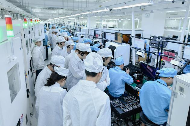 25日,受邀到OPPO工厂进行参观。穿过园林式的工业园区,进入生产车间,一眼望不到头的巨大车间里整齐摆放着各种叫不出名字的机械设备。工人们身着白、蓝色的防尘服,让人瞬间感觉置身未来科技世界。