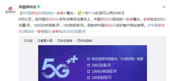 中国移动5G套餐曝光:200G流量/月+1000分钟语音