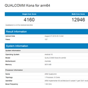 8月6日消息,代号为“Kona”的神秘设备现身GeekBench跑分网站。其单核成绩为4160,多核成绩达到了12946。