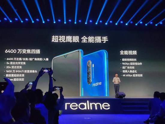 随后realme产品总监王伟上台,梳理realme品牌全球产品线,并着重介绍了精简过后的中国产品线,同时发布realme首款旗舰产品realme X2 Pro。