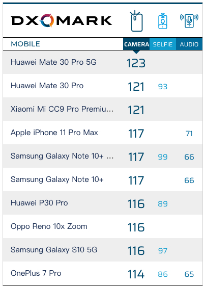 DxO公布华为Mate30 Pro 5G版得分 123分登顶榜单