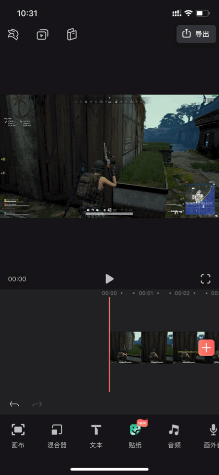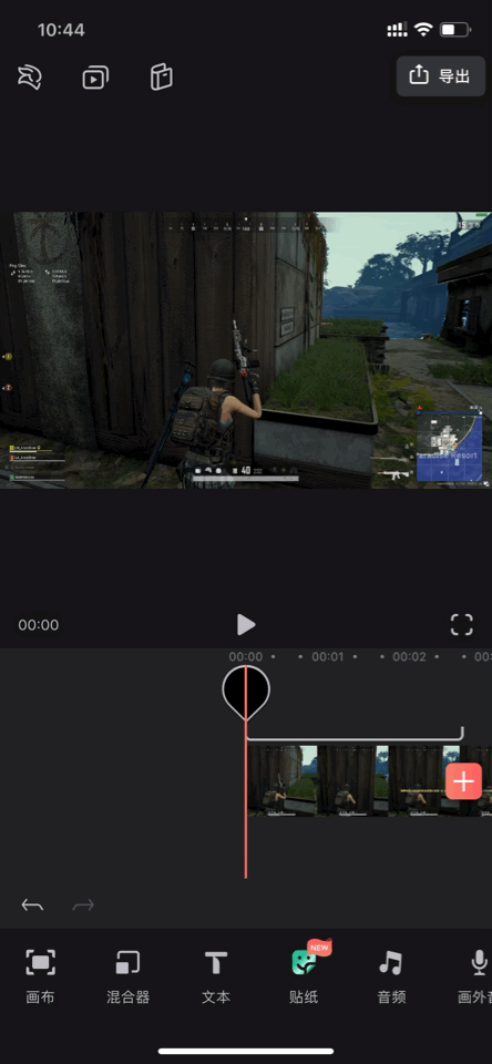 将拆分出来的视频片段复制一份用来做放大效果,点击这段视频,滑动工具条点击‘复制’,再点击‘混合器’将复制的片段单独放置到一个图层。