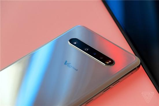 V60 ThinQ背面有三个摄像头:一个 ToF 传感器,一个1 / 1.7英寸6400玩像素主摄像头,支持OIS光学防抖,和一个1300玩像素超广角摄像头。手机支持8K视频录制,支持 HDR10 + 手动模式。