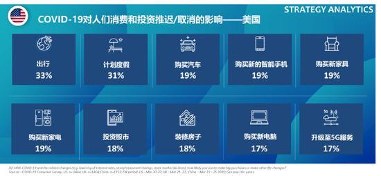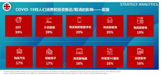 由于COVID-19疫情的影响,五分之一的美国和英国消费者对于智能手机,汽车,家具和电器的购买也同样搁置,其他技术产品的购买/升级也被搁置。