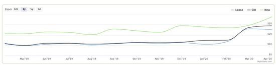 根据 PriceCharting 网站的价格曲线变化图可以看到,自今年 3 月起,《Wii Sports》游戏在 eBay、亚马逊和 GameStop 等国外电商网站上的价格都出现了一定的上涨。