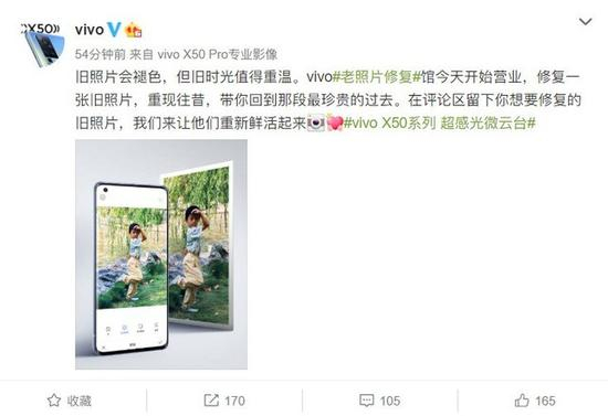 今天下午,@vivo官方更新微博表示:旧照片会褪色,但旧时光值得重温。vivo#老照片修复#馆今天开始营业,修复一张旧照片,重现往昔,带你回到那段最珍贵的过去。