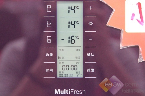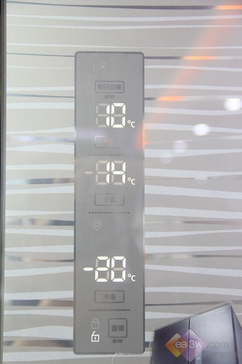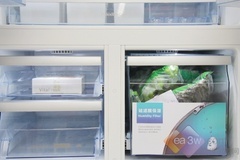 这款博世KMF40S50TI多开门冰箱采用了超大显示屏操控区,根据三个温室的区间划分为:冷藏室、维他保鲜室、冷冻室。超大数码显示,冰箱内部工作状态一目了然。