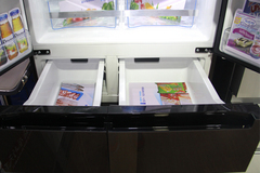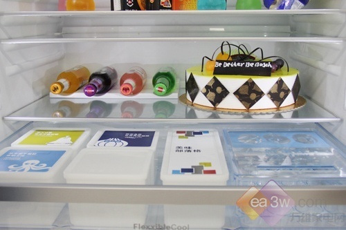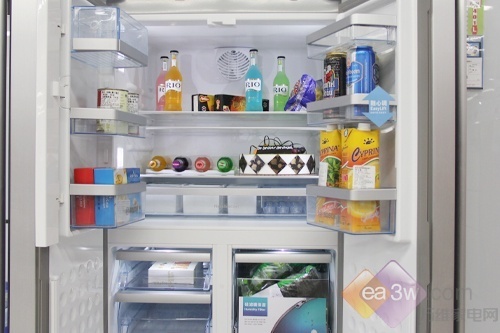 西门子零度多门冰箱内部最大的优势在于独立分区,不同种类的食物归集到一起,又让它们摆放有序,每一个都有相对的独立空间。门体搁架摆放着各种饮料、食品等,门体两侧的搁架盒还可以轻松拆卸调试,非常方便自如。